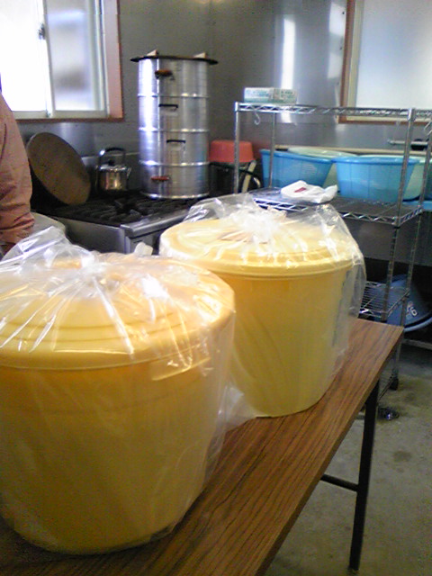 こだわりの大豆も蒸してです(^O^)/♪♪